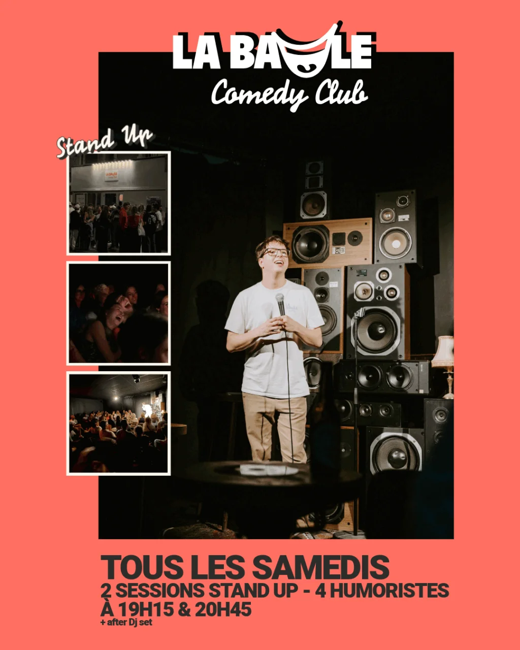 Un espace hybride, entre salle de stand-up et bar audiophile, imaginé pour rassembler toutes les générations autour du divertissement et du partage. Ici, on vient pour rire, boire, danser, manger et s’amuser !